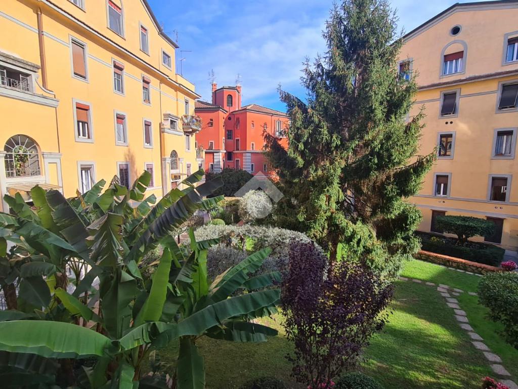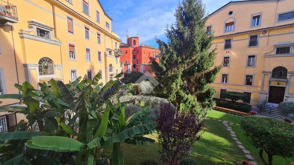 Trovandosi ad un quarto piano (SENZA ASCENSORE), la casa gode di una piacevole luminosità ed affacci assai fortunati; una parte di essi guarda all'interno del coloratissimo giardino del comprensorio, altri verso il Parco delle Volpi.