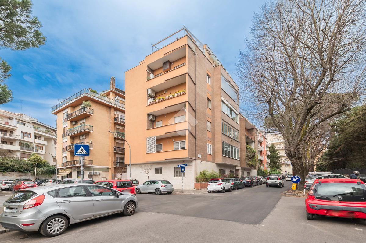 Via dei Giuochi Istmici - In elegante palazzina in cortina, proponiamo un appartamento con la seguente disposizione interna: Ingresso, salone doppio, cucina abitabile, camera en-suite con bagno privato, camera matrimoniale, camera singola ed un ulteriore bagno con ampia doccia.